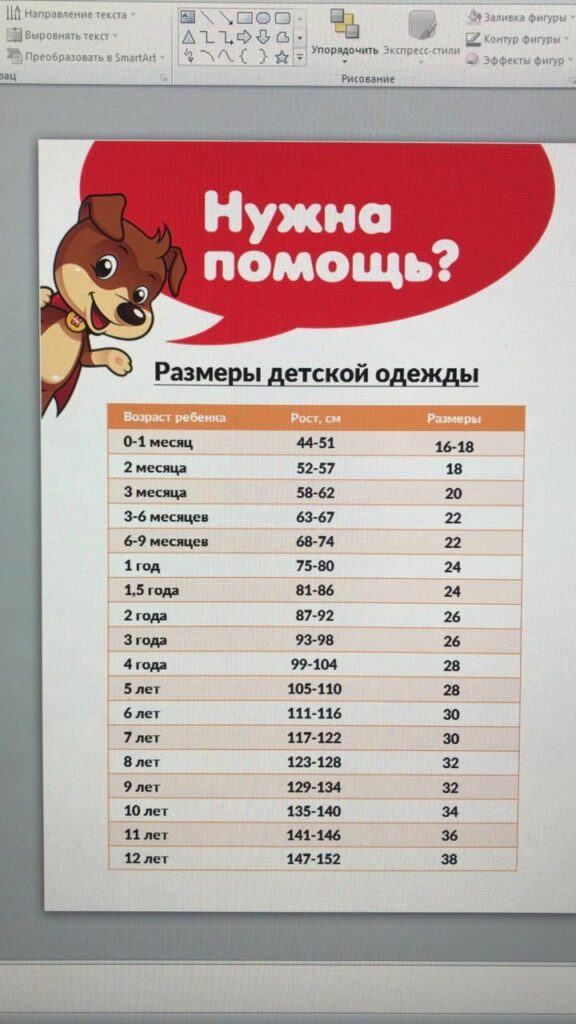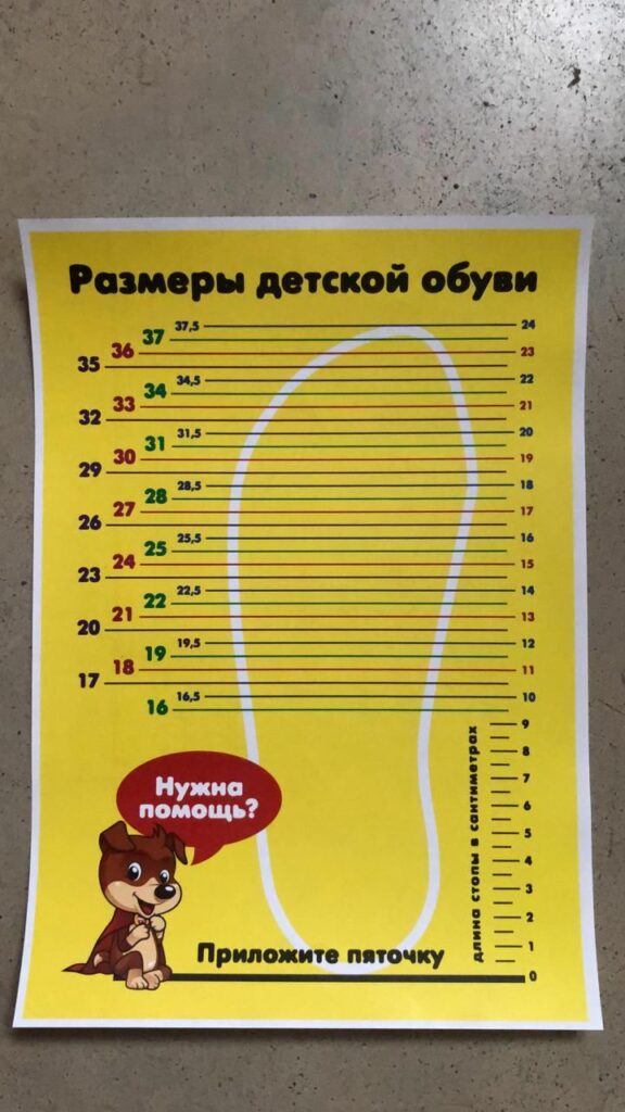 Максим изготовил ростомеры, и подсказки размерных рядов для детей всех возрастов.