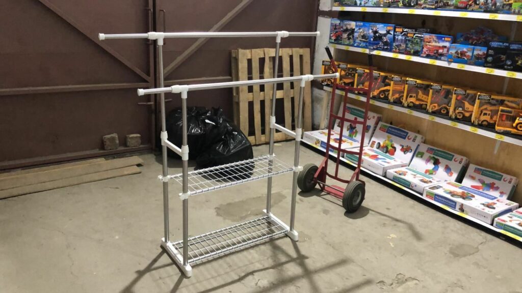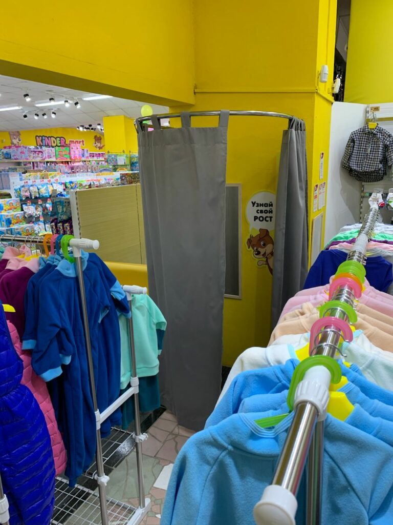 Переделки начали с отдела одежды. Купили вешалку специально для маленьких детских вещей.
